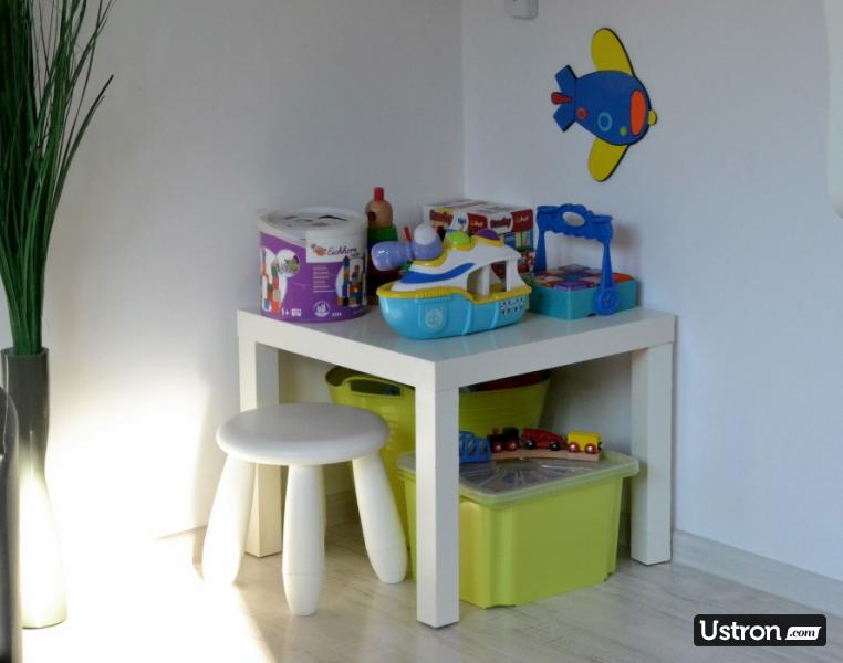Nasz Apartament w Ustroniu jest przyjazny dzieciom. Wyposażony jest w "kącik malucha" z zabawkami, grami, puzzlami i książeczkami. W aprtamencie jest dużo udogodnień dla rodzin dziećmi- specjalne naczynia i kubeczki, w łazience podium dziecięce, mata antypoślizgowa do brodzika, nakładka na wc. Na życzenie wypożyczamy łóżeczko dziecięce, krzesełko do karmienia, wanienkę oraz nosidło turystyczne. Zimą udostępniamy sanki. Wszystko w cenie wynajmu.